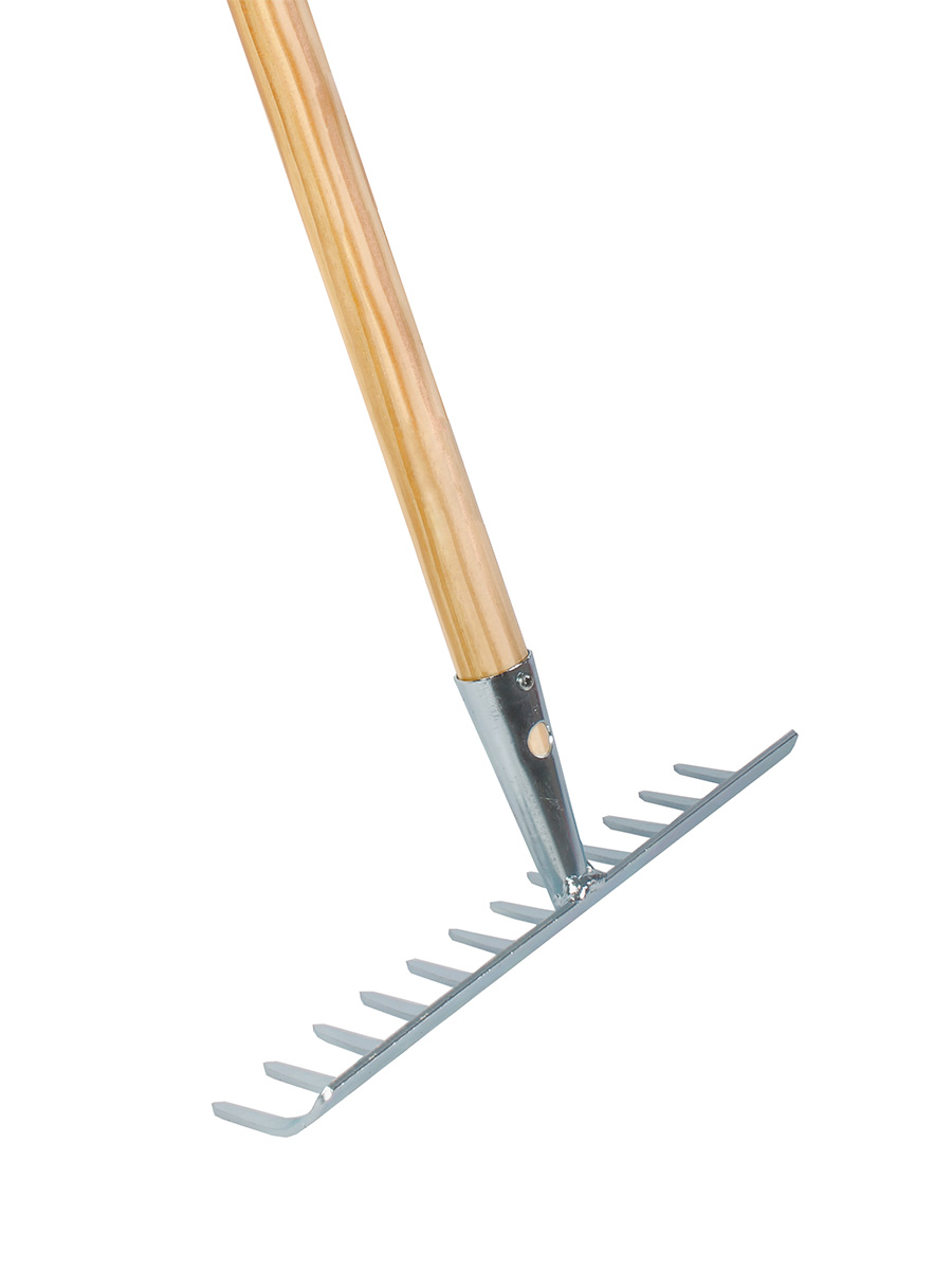 Deze tuinhark is geschikt voor het egaal harken van grind. De tuinhark heeft 12 tanden, waardoor hij ook zeer geschikt is voor het verwijderen van tuinafval. De tuinhark is geproduceerd uit verzinkt staal wat roesten tegengaat en hierdoor een lange levensduur heeft. Aan de tuinhark zit een steel van 160cm, wat zorgt voor een fijne werkhouding.
